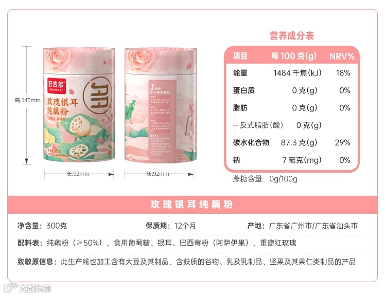 保质期:8个月(坚果水果)、12个月(桂花莲子、玫瑰银耳)