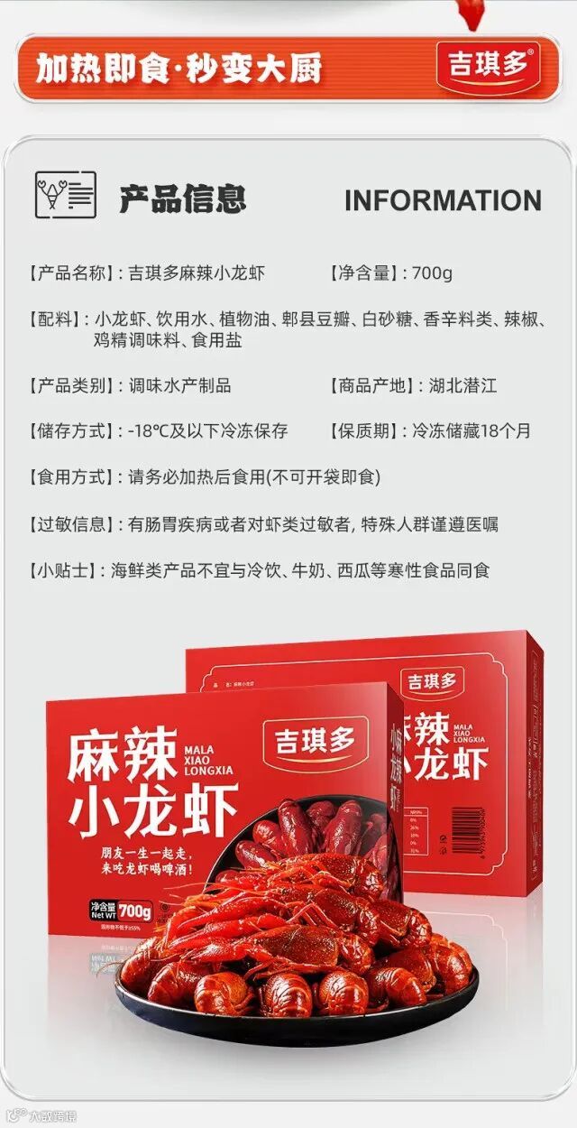 【粉丝群补贴】吉琪多麻辣小龙虾700g/盒*4盒 原价:159元 粉丝群补贴价:129元