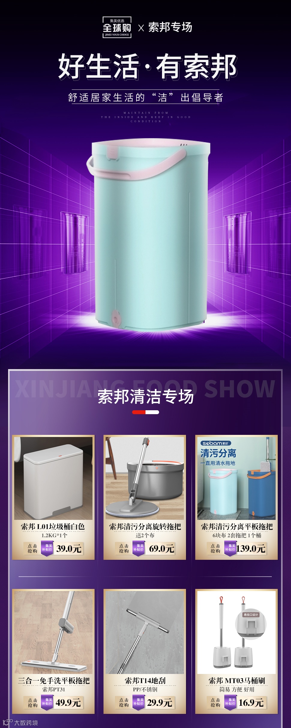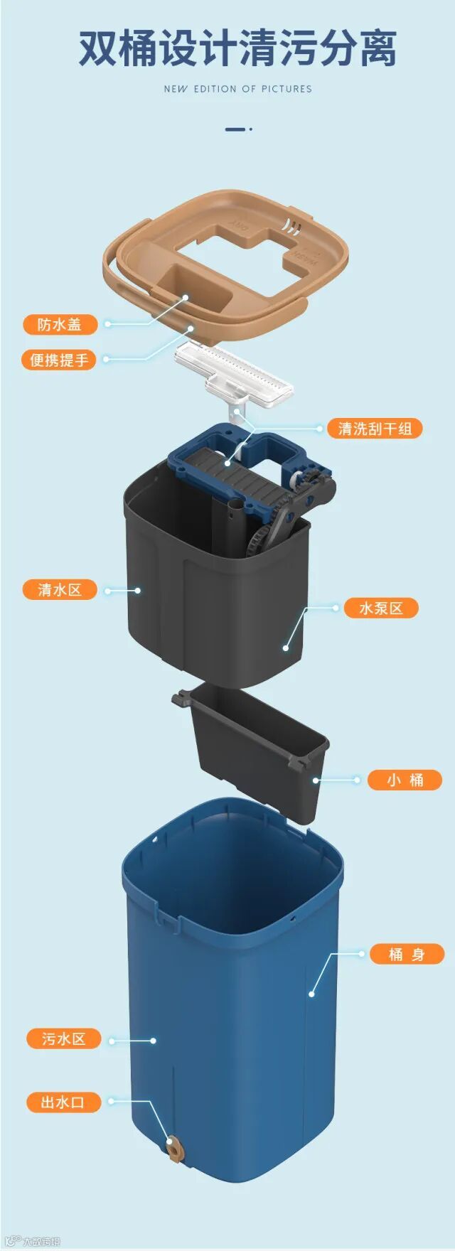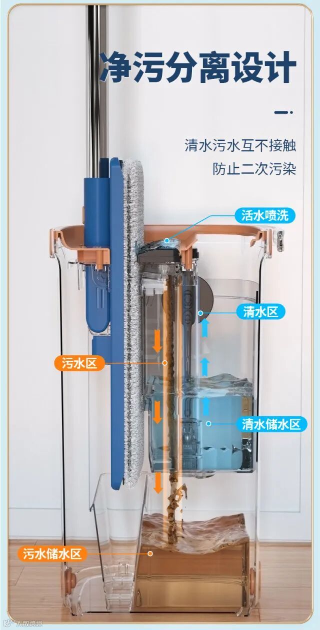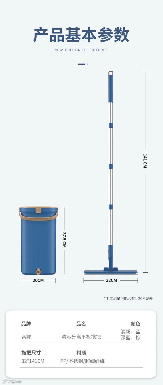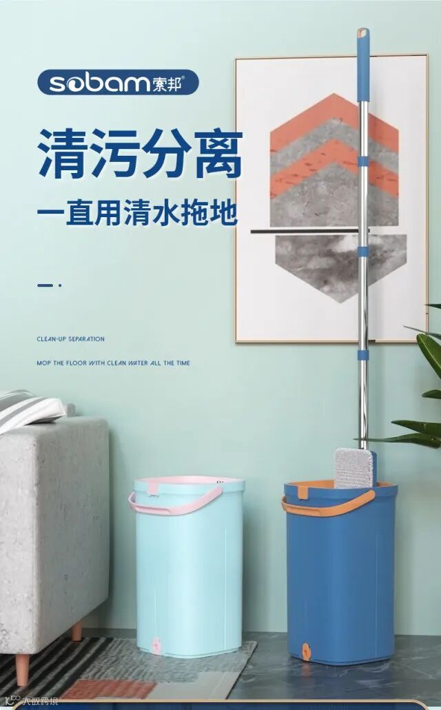 【清洁用品】索邦S16清污分离平板拖把(6块布 2套拖把 1个桶)