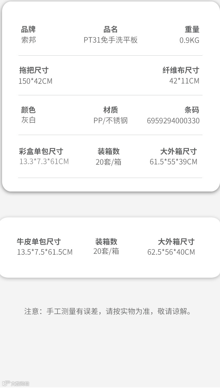 【清洁用品】索邦PT31 扫拖刮三合一懒人免手洗平板拖把