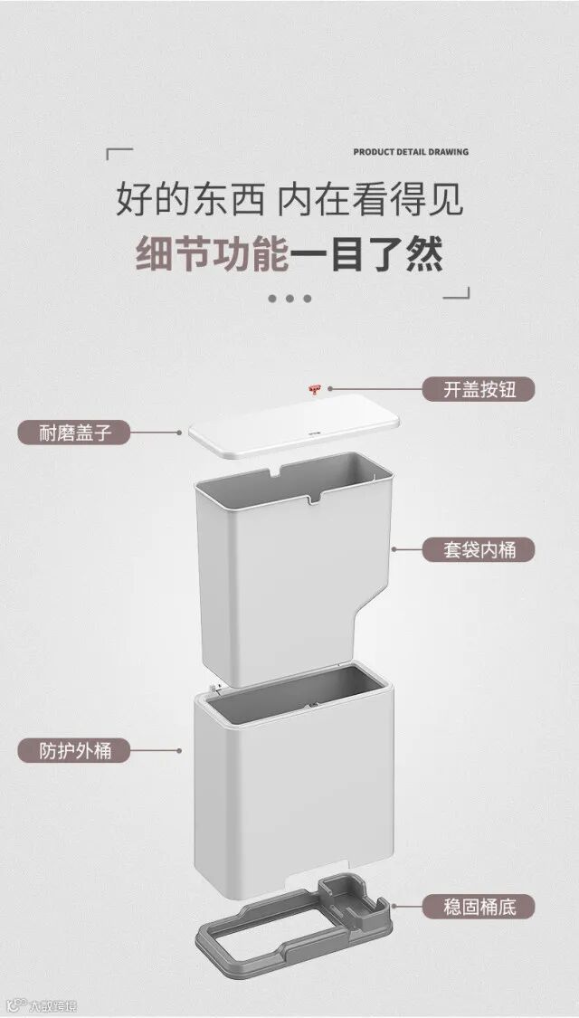 【清洁用品】索邦 L01垃圾桶白色 1.2kg*1个