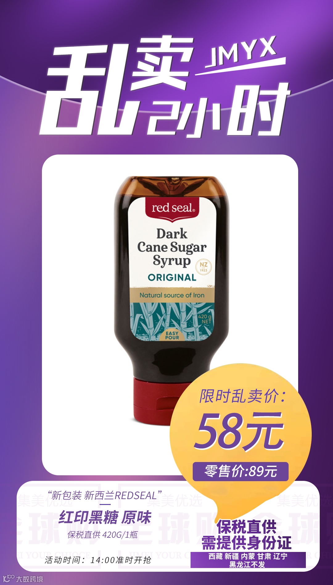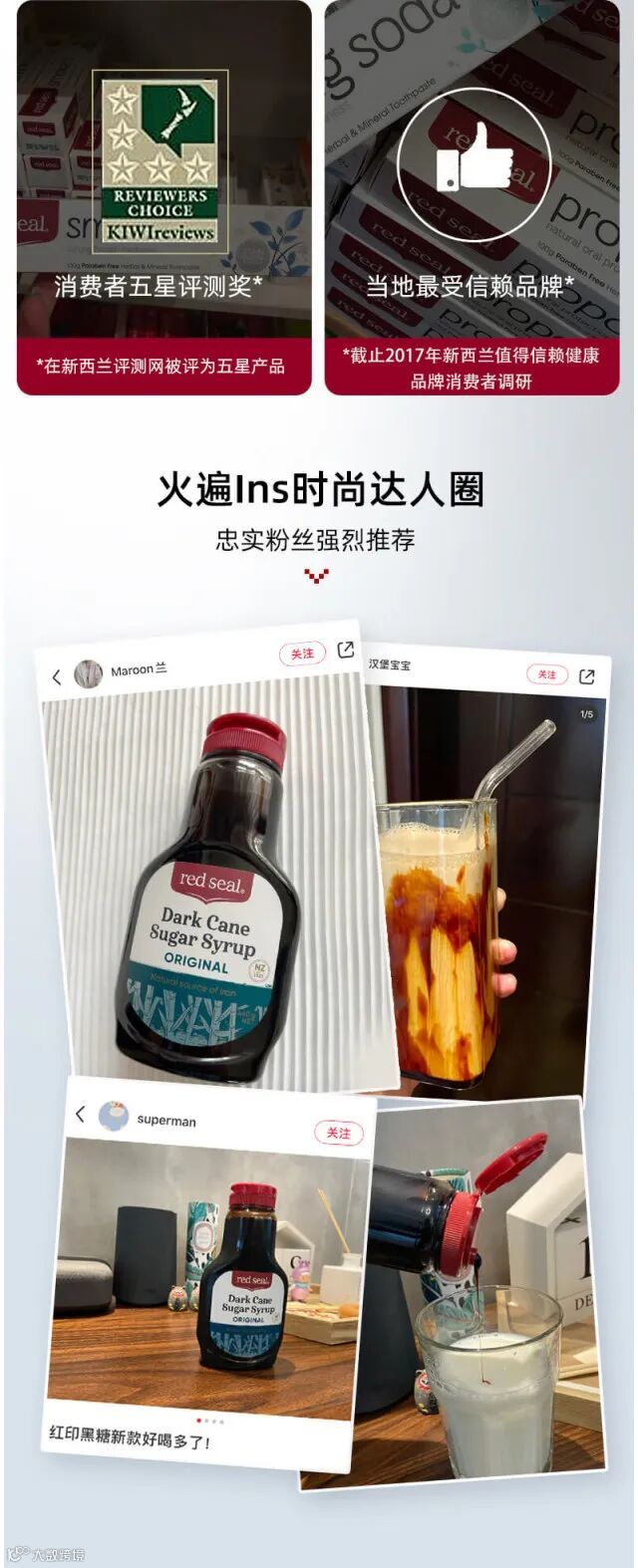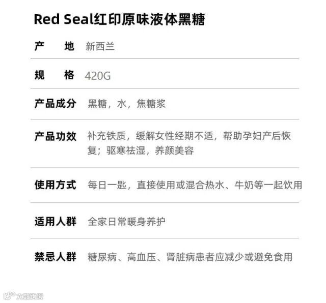 【粉丝群补贴】保税直供 新包装 新西兰redseal红印黑糖 原味 420g 原价:89元 粉丝群补贴价:58元