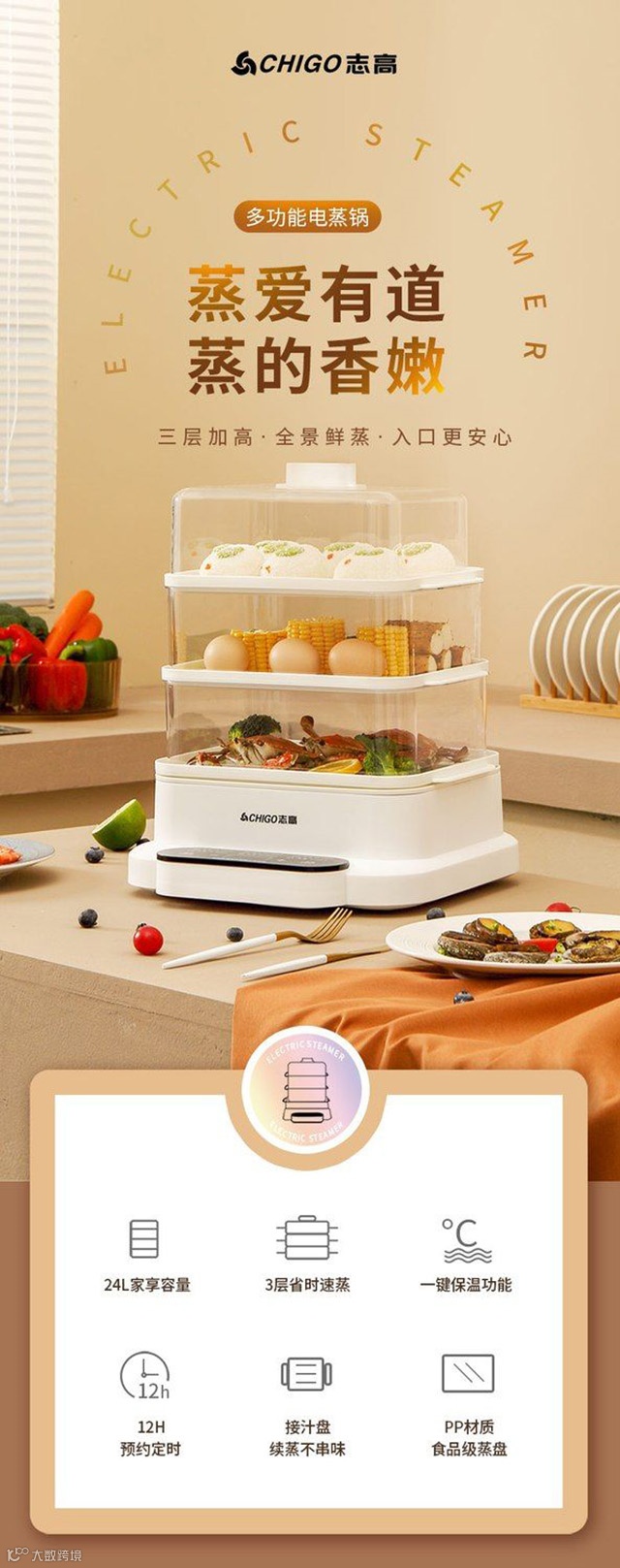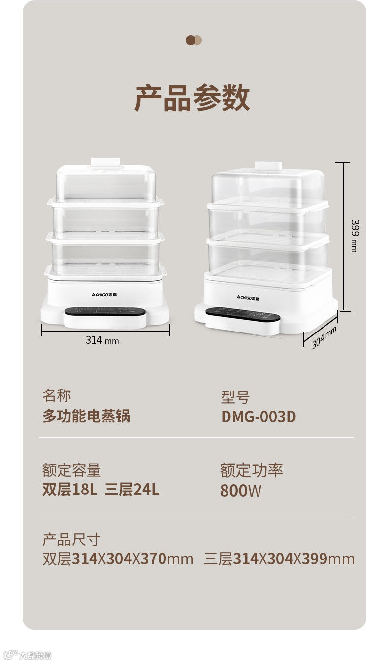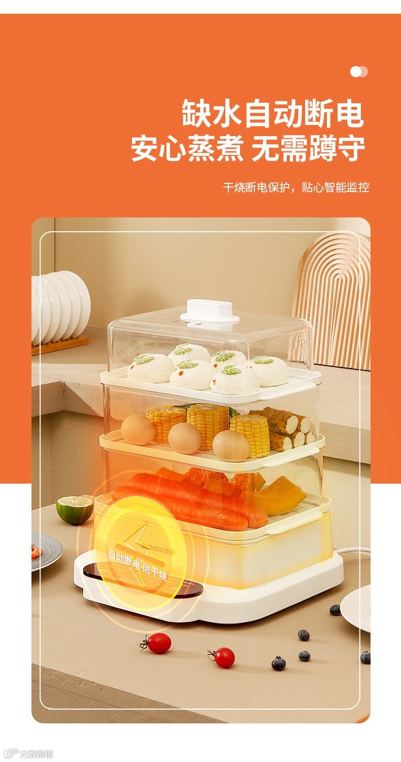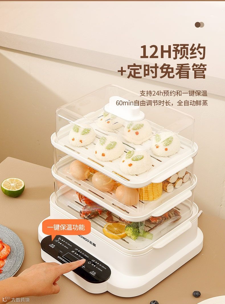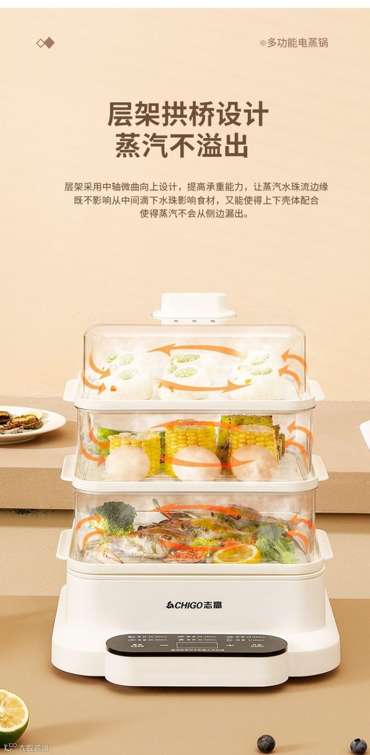【粉丝群补贴】志高电蒸锅三层大容量多功能家用肠粉蒸汽锅智能预约早餐机电蒸箱 PP/白色 原价:299元 粉丝群补贴价:199元