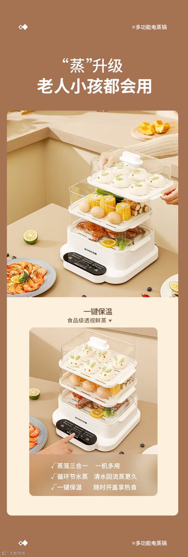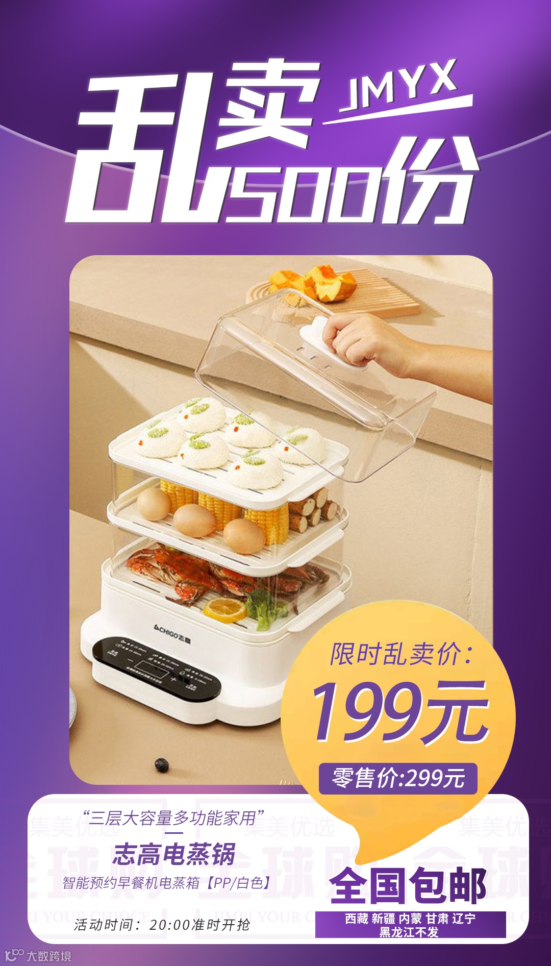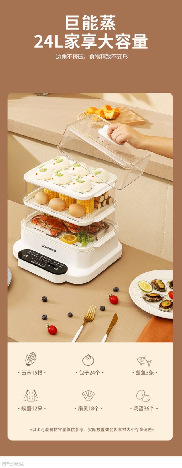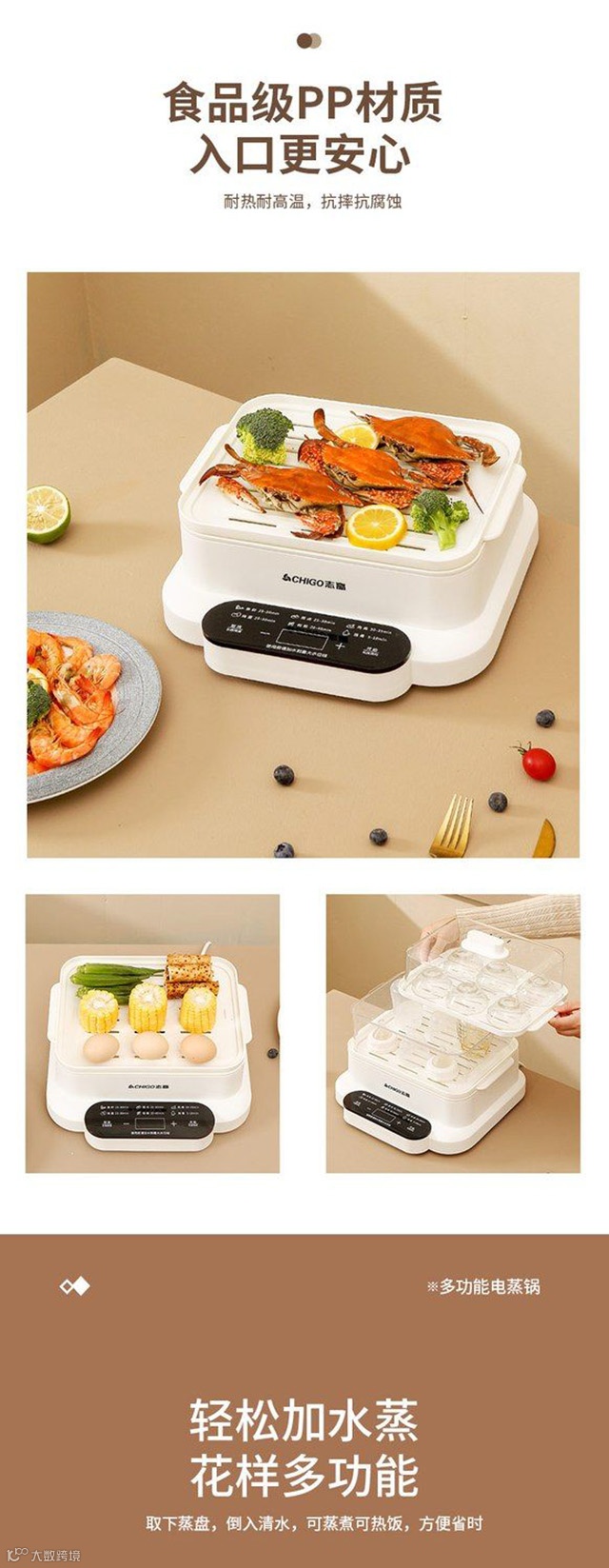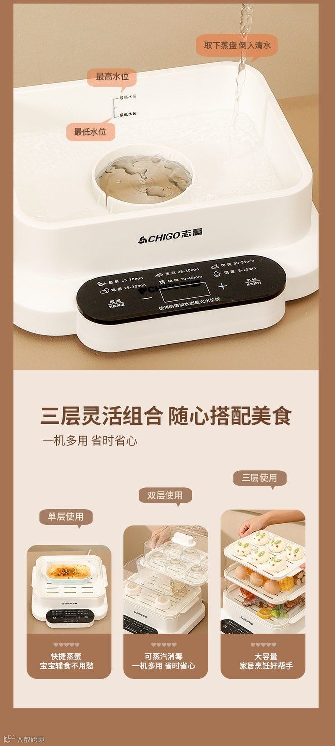 【粉丝群补贴】志高电蒸锅三层大容量多功能家用肠粉蒸汽锅智能预约早餐机电蒸箱 PP/白色 原价:299元 粉丝群补贴价:199元