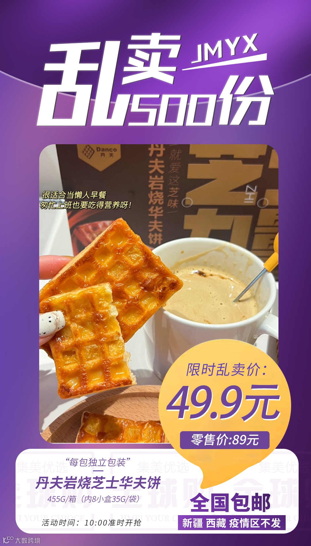 【粉丝群补贴】丹夫岩烧芝士华夫饼455g/箱(内8小盒35g/袋) 原价:89元 粉丝群补贴价:49.9元