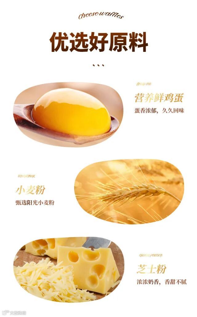 咸香芝士,格格细腻,采用阳光小麦粉与细腻乳粉制作华夫饼,