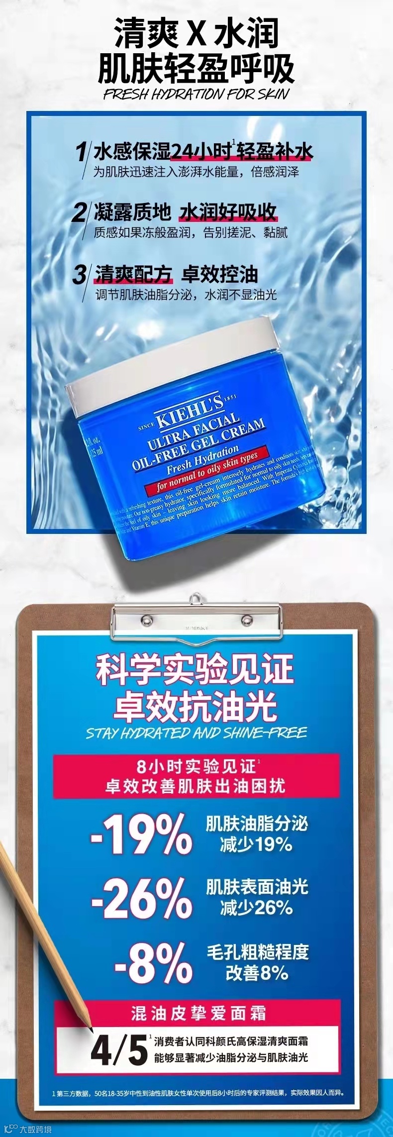 科颜氏(Kiehl's) 高保湿清爽面霜,深层保湿,调节肌肤水油平衡,长效保湿功效。有效锁住水分,减少面部油脂,让肌肤看起来更加均衡。富含白茅根提取物、冷冻保护蛋白,为肌肤注入并锁住水分。同时含有无油滋润调节剂,保持肌肤水油平衡,恢复肌肤光滑、清新、健康的状态。