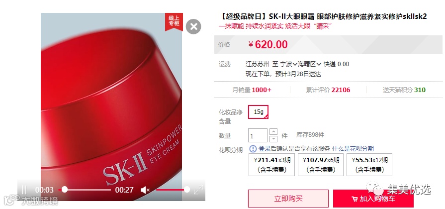 sk2大眼眼霜2.5g小样今天15点好物推荐只要49.9元!!!6瓶相当于一个正装,只要300不到,立省320元!!!