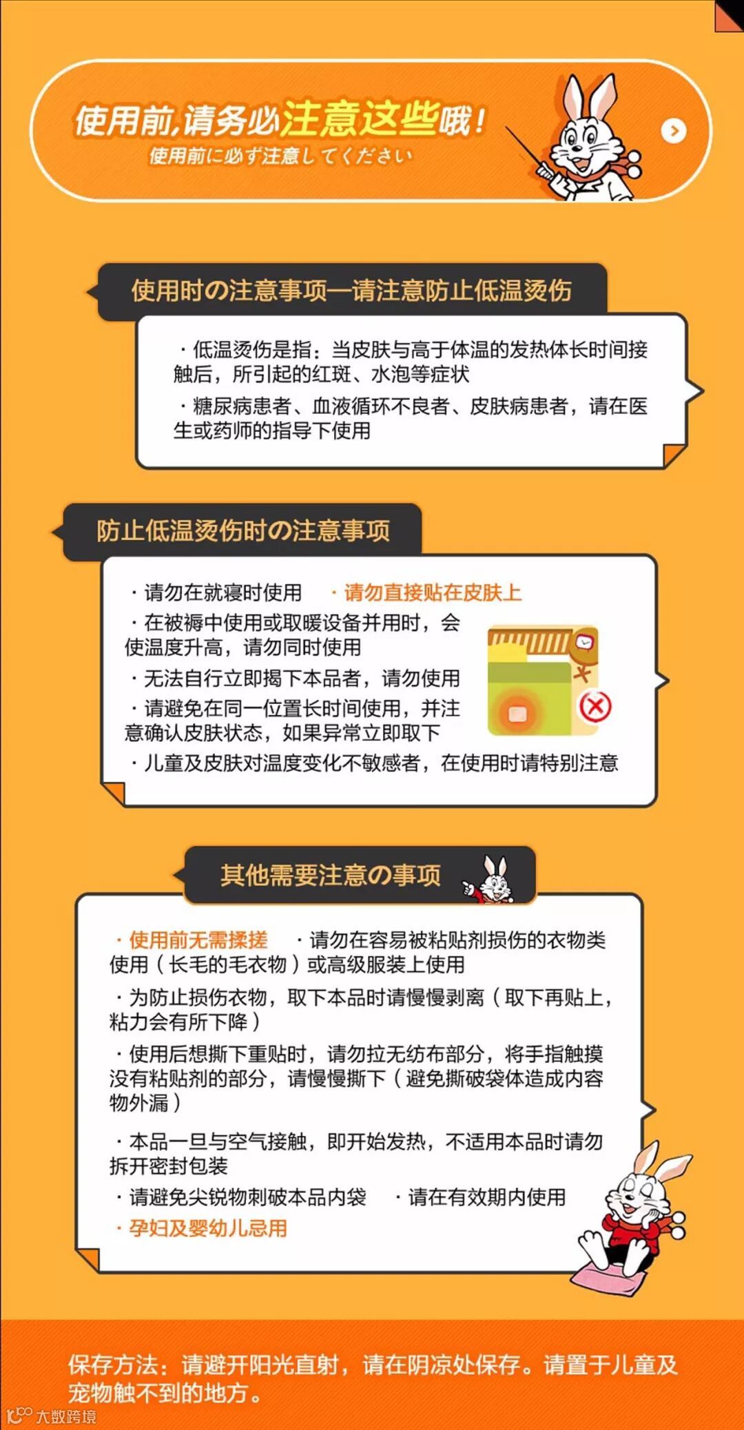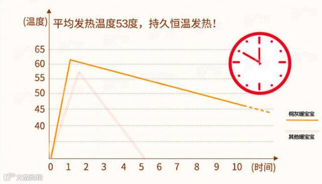 这款暖宝宝它的温感持续时间最长可达到14个小时,发热温度最高63℃ ,平均温度53℃ 。