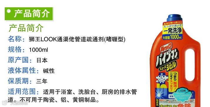【大牌团购】LION/狮王通渠佬清洁啫喱 1L 原价:48元