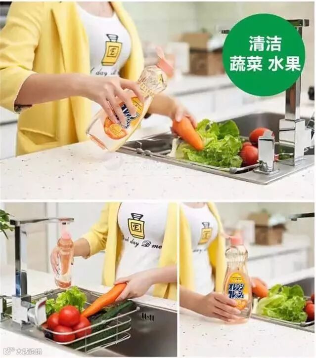 1、清洗蔬菜水果时,每1L水兑1.5ml洗洁精,冲洗30秒以上;