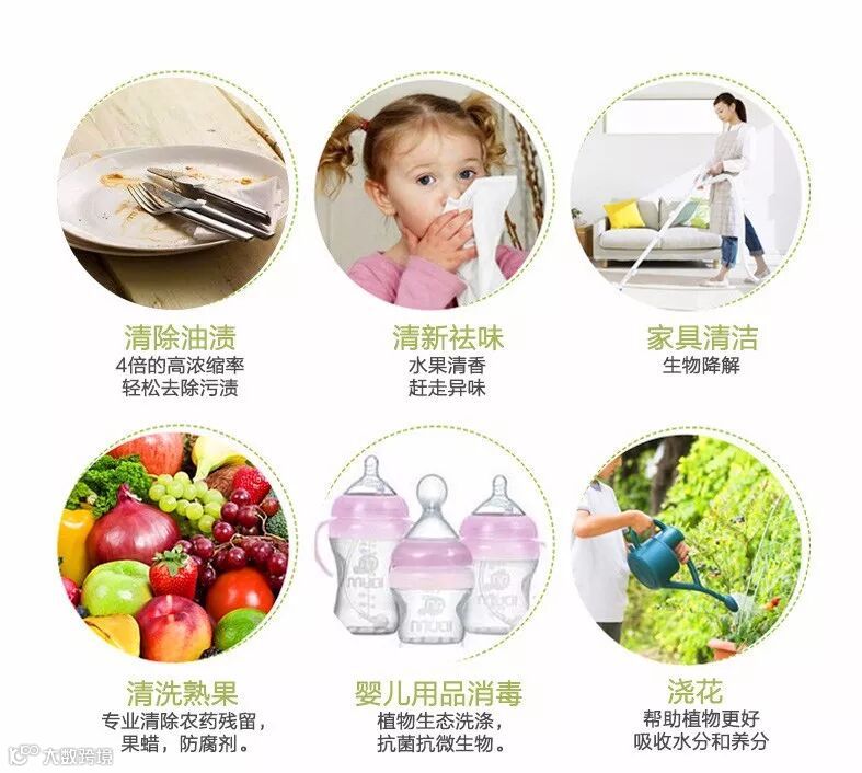 由于这款产品是天然配方,洗完蔬果的水可以用来浇花,家里的植物会长的更好,还可以用来拖地,一点也不浪费呢