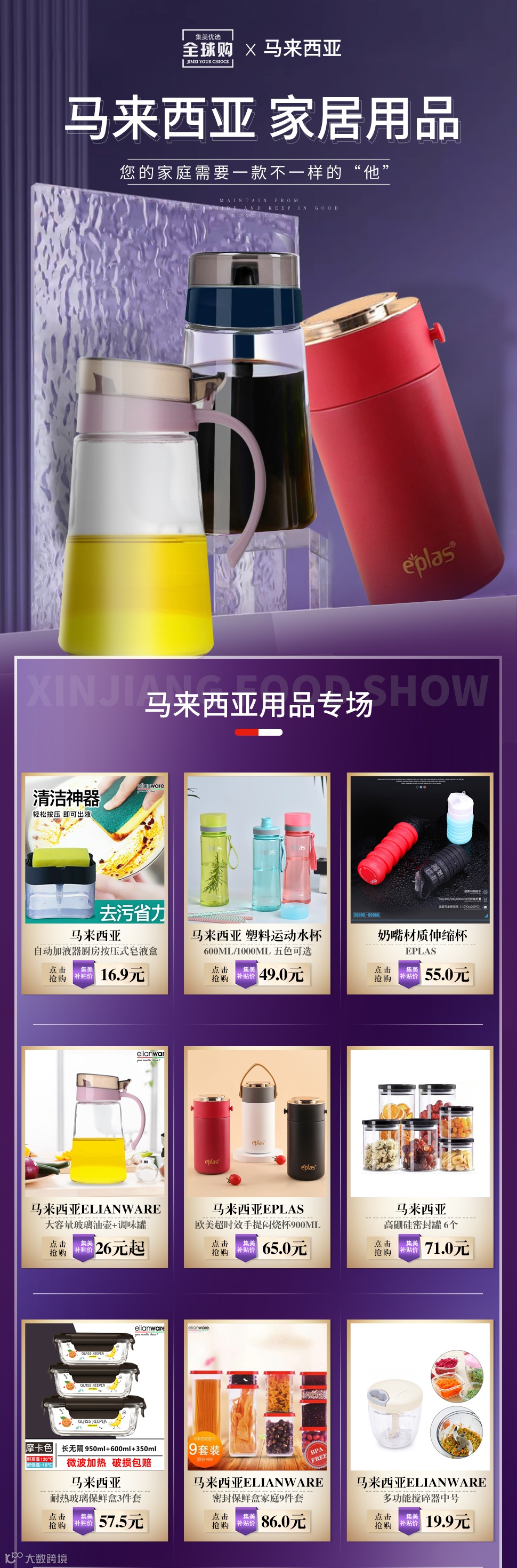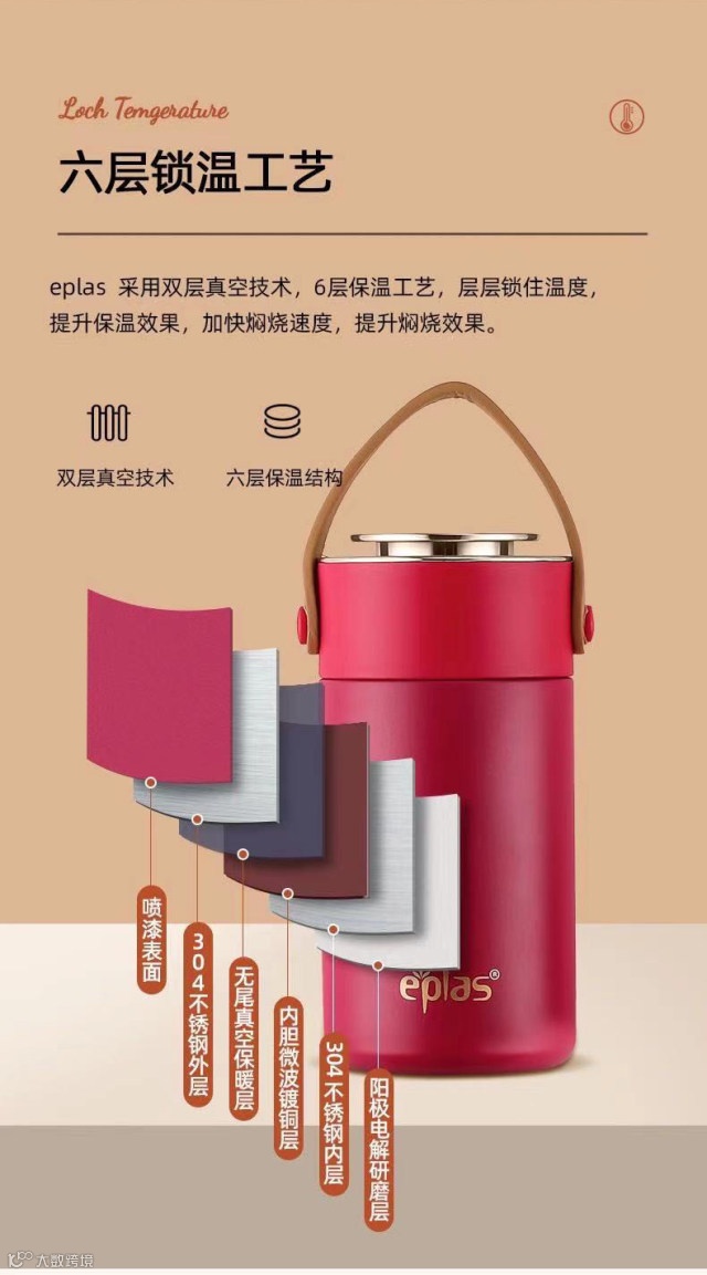 马来西亚eplas欧美超时效手提闷烧杯900ml/1个