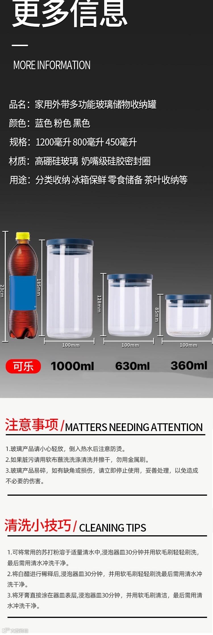 高硼硅密封罐 6个(颜色随机)(E-1681 E-1682 E-1683 各2个)