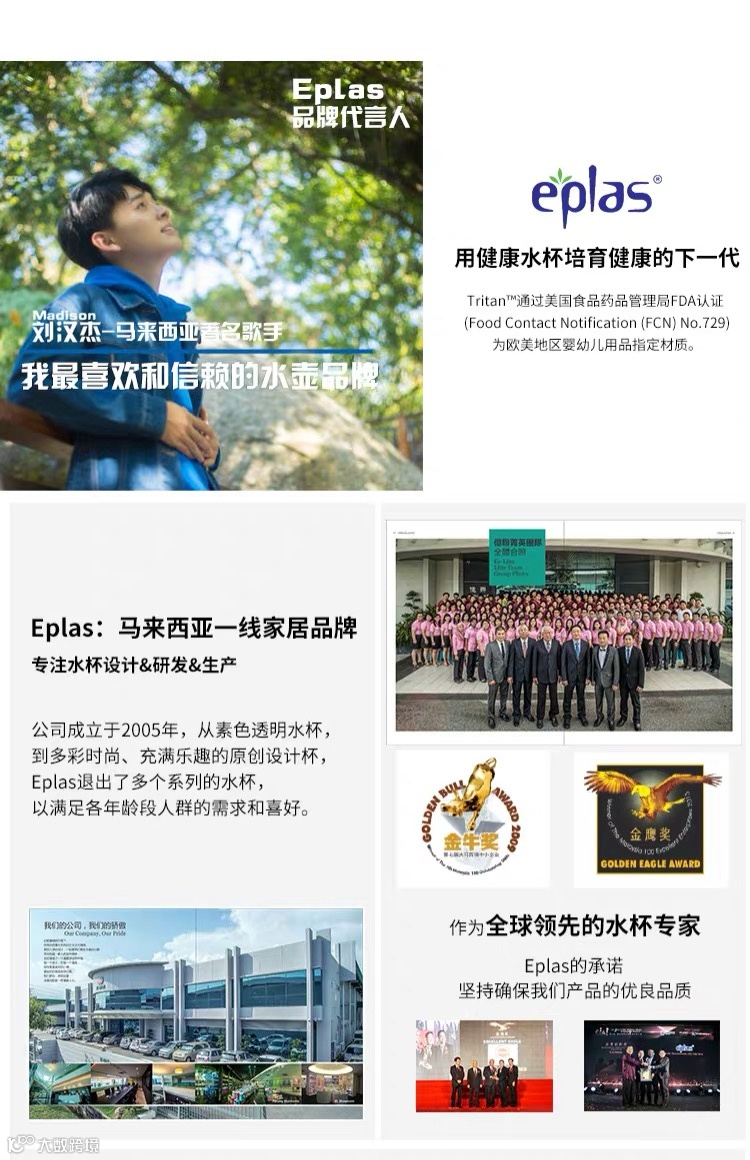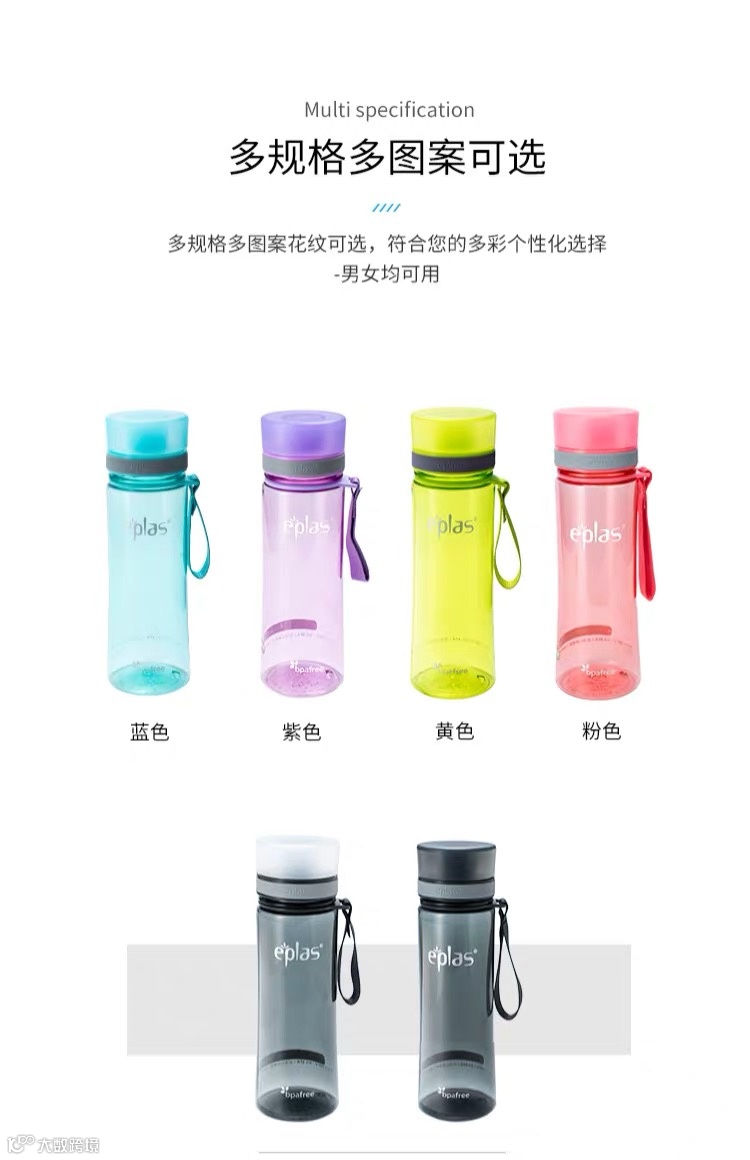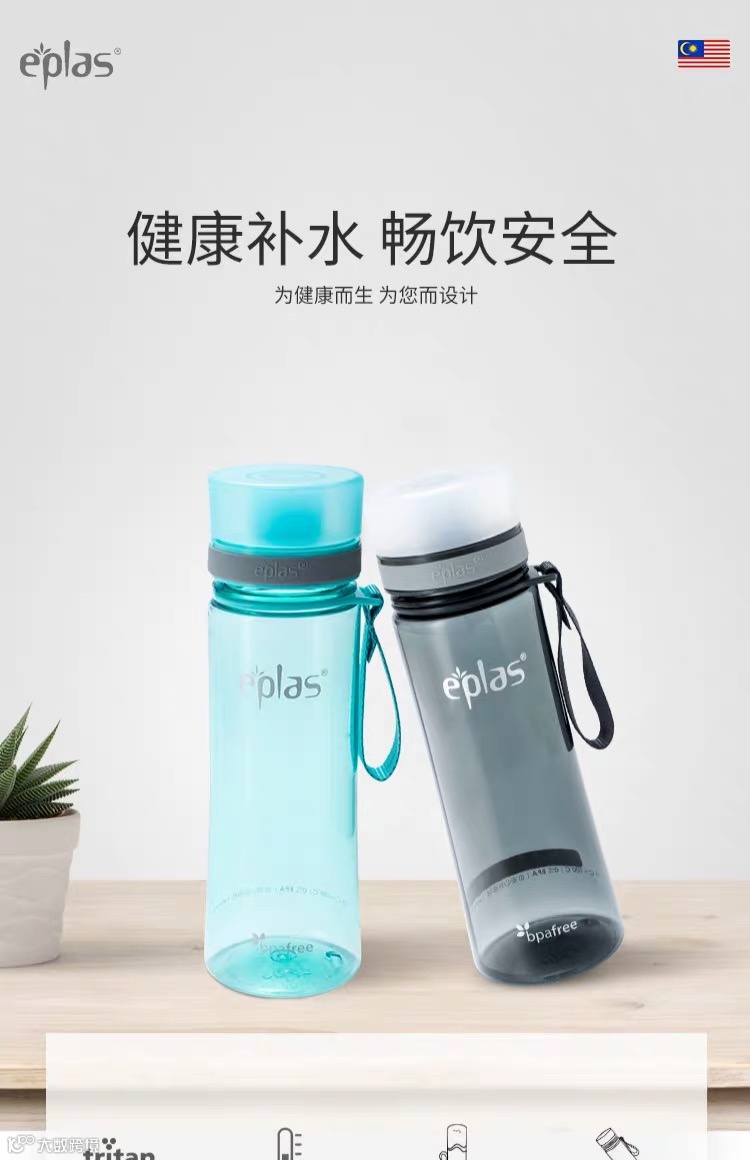马来西亚 EPLAS 塑料运动水杯1000ml 五色可选