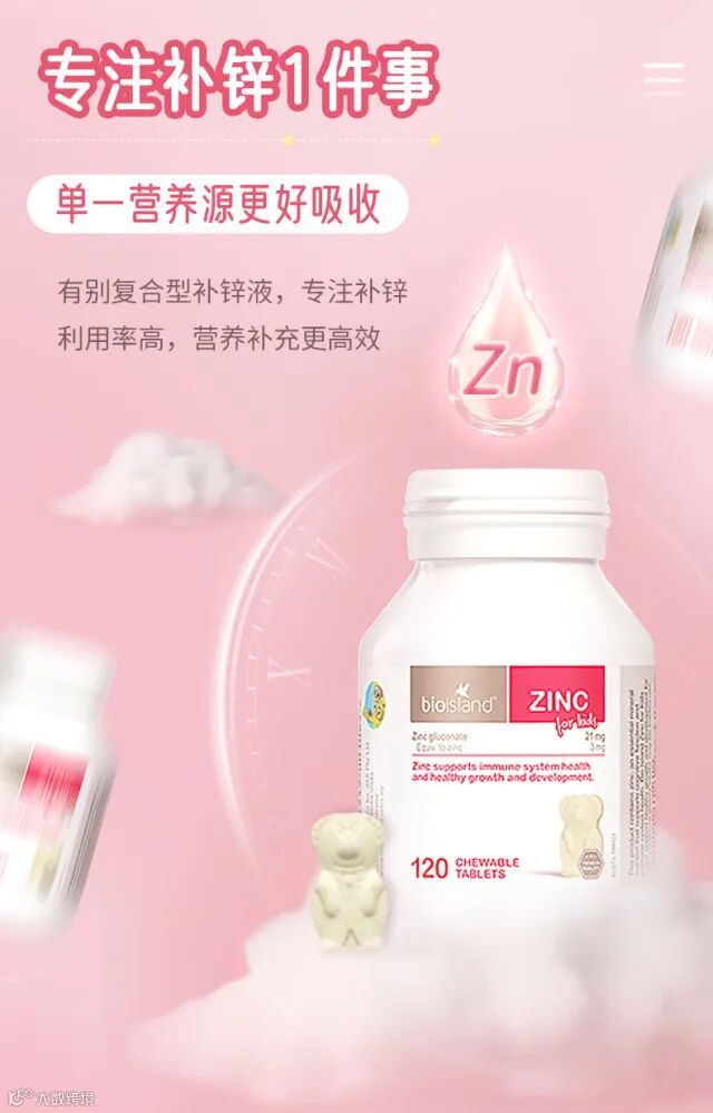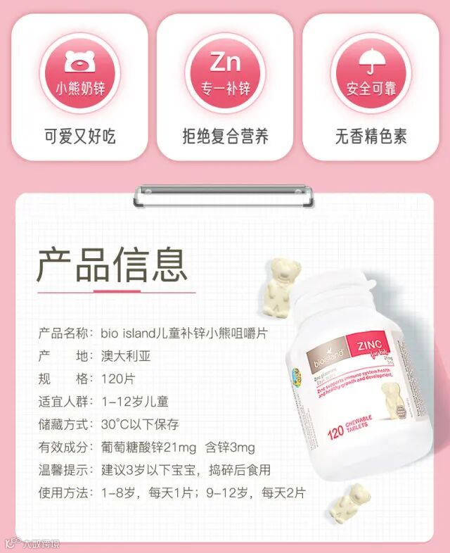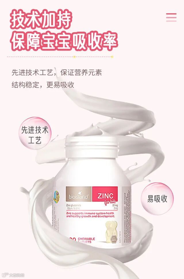【保健品专场】澳洲bio island婴幼儿童宝宝补锌小熊咀嚼片120粒