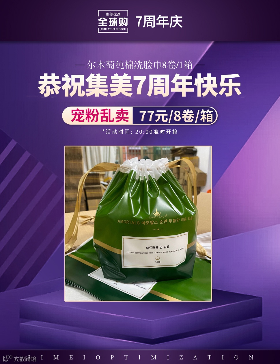 【乱卖500份】尔木萄纯棉洗脸巾8卷/1箱