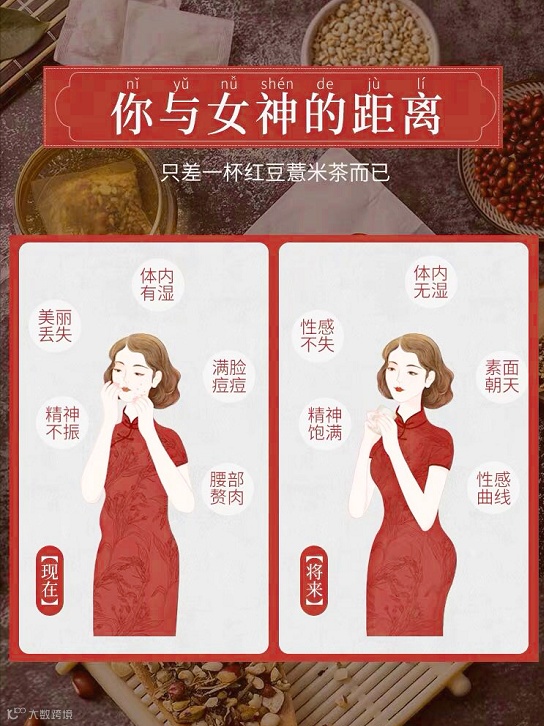 卖点:改善健脾祛湿、降三高、祛痘排脓、口苦口臭、脚气湿疹、水肿肥胖男女老少都可以喝 特别是湿气重,口苦口臭,脚气湿疹,水肿肥胖等效果超级给力!