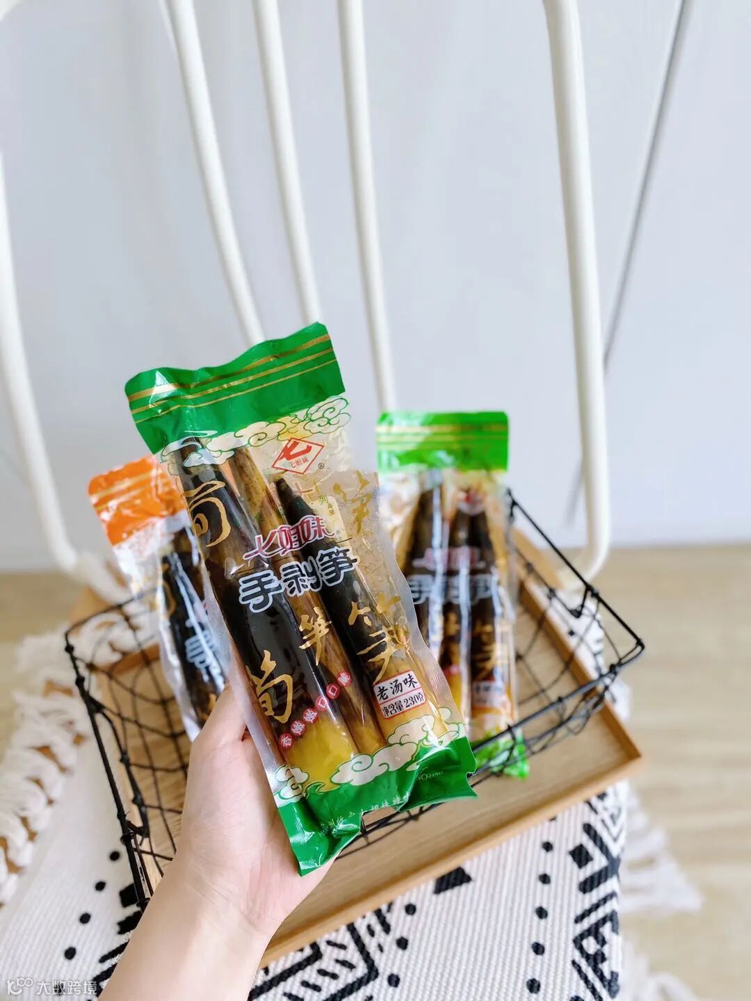 👉特点:即食美味,农家手工工艺制作,口味醇正,经高温灭菌,含有老汤味,泡椒味,香辣味三种口味,选自新鲜嫩笋,肉质嫩脆,鲜香爽口!