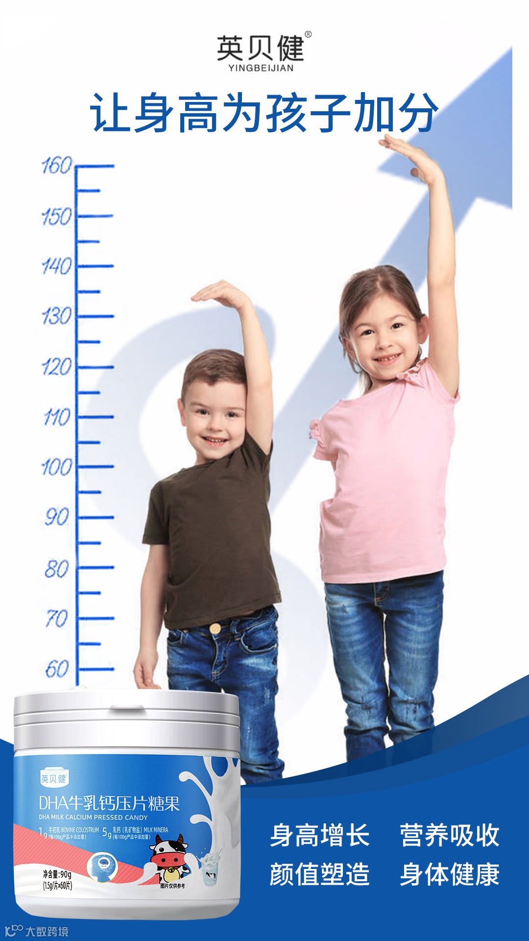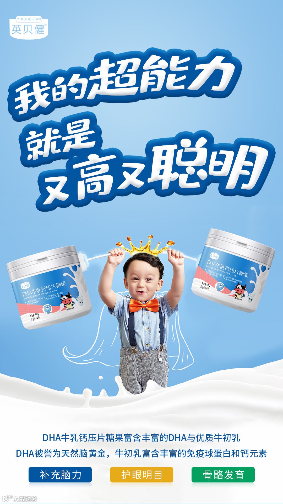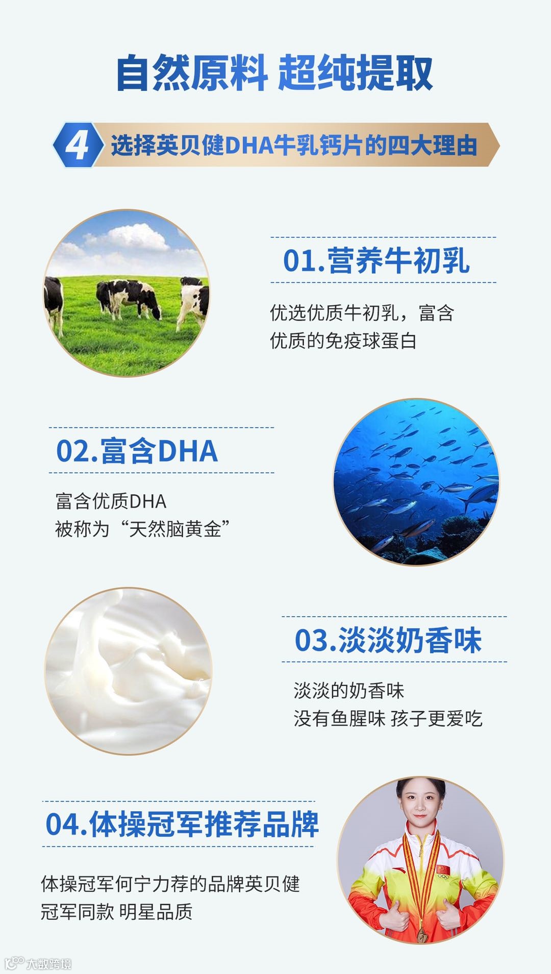 ??想长高个人群:身体正在生长发育、钙不足导致个子较矮,生长发育较慢,每天几片英贝健DHA钙片,助力长高个!