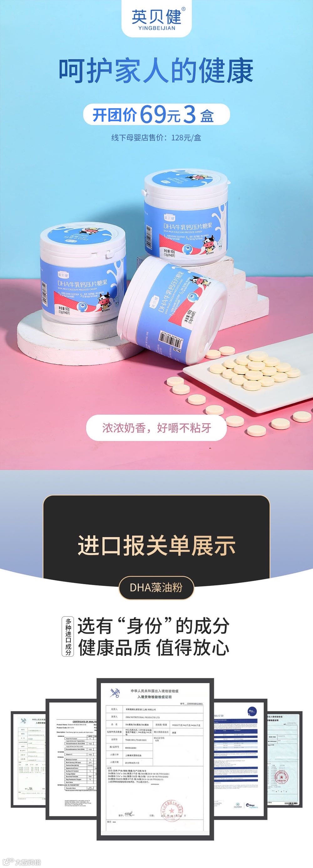 【大牌团购】英贝健DHA牛乳钙片90g/60片3罐 原价:388元