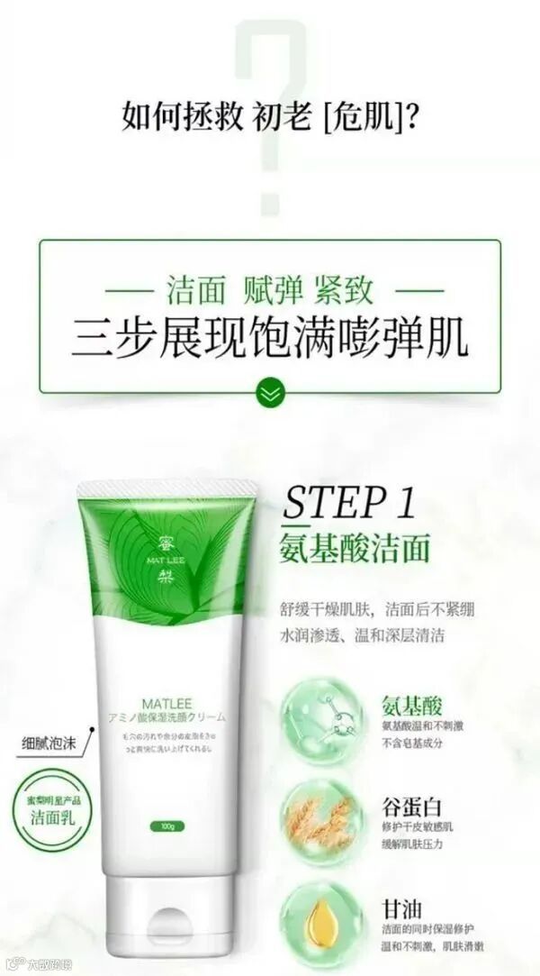 使用方法:湿脸后,取适量本品于掌心,加水轻揉起泡并将泡沫涂于脸部,以轻轻打圈的方式进行按摩片刻,再用温水洗净即可。