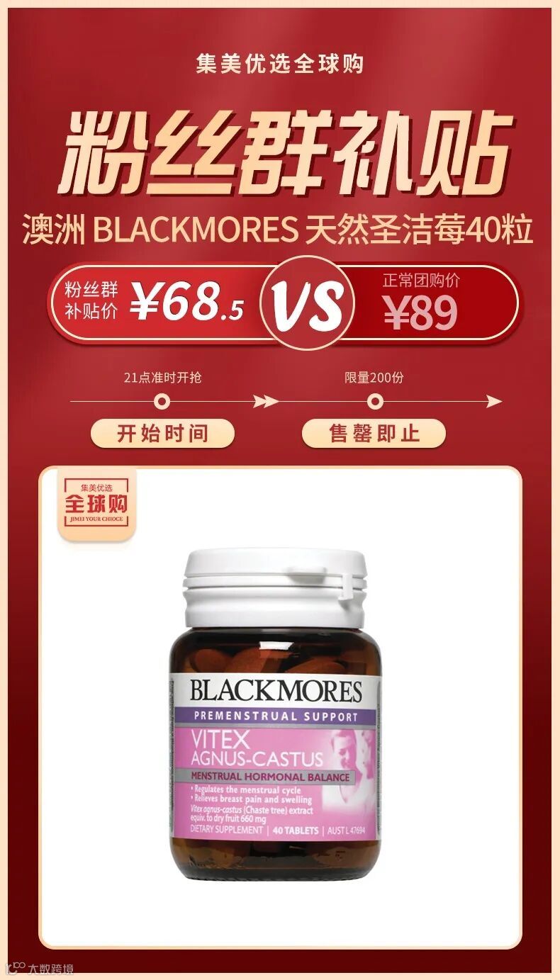 【粉丝群补贴】澳洲 Blackmores 天然圣洁莓40粒 平衡女性荷尔蒙经期调理内分泌 原价:89元 粉丝群补贴价:68.5元