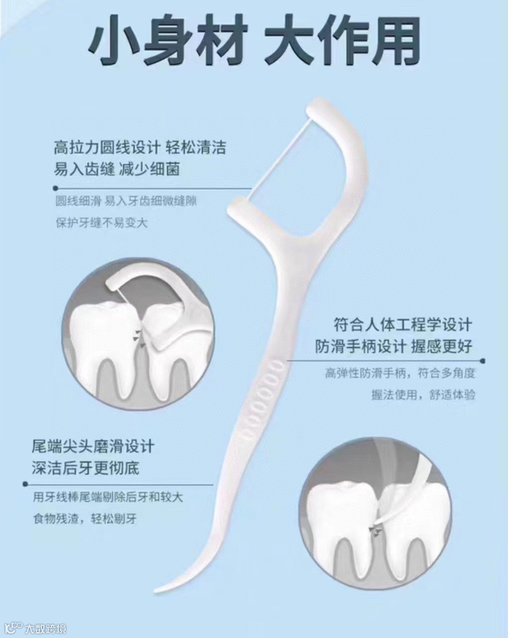 牙线棒在发达地区的使用已经较为普遍,是居家旅游不可缺的生活日用品,而饭后使用牙线棒对牙齿进行自我清理,就像人们饭前洗手,饭后漱口一样,成为日常生活中不可少的一个程序