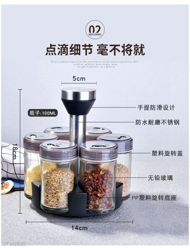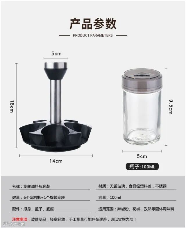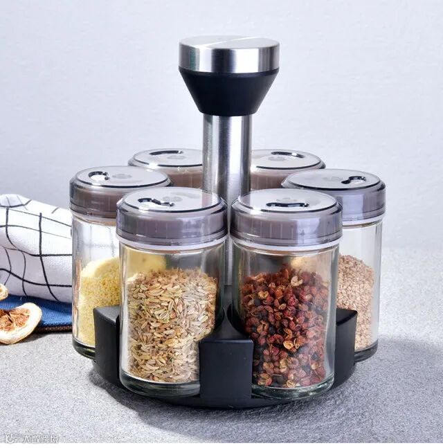 【粉丝群补贴】旋转无铅玻璃调料瓶套装(6个调料瓶+一个旋转底座)