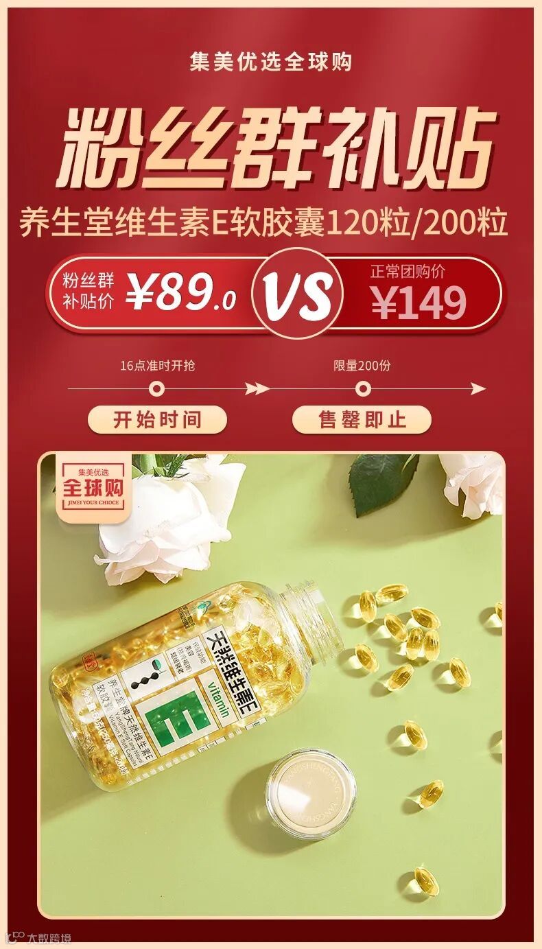【粉丝群补贴】养生堂天然维生素E软胶囊120粒/200粒可选 原价:149元 粉丝群补贴价:89元