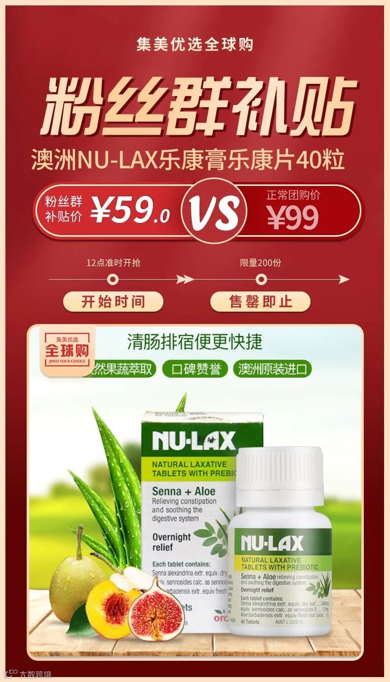 【粉丝群补贴】澳洲NU-LAX乐康膏乐康片40粒防便秘清宿便排肠毒 原价:99元