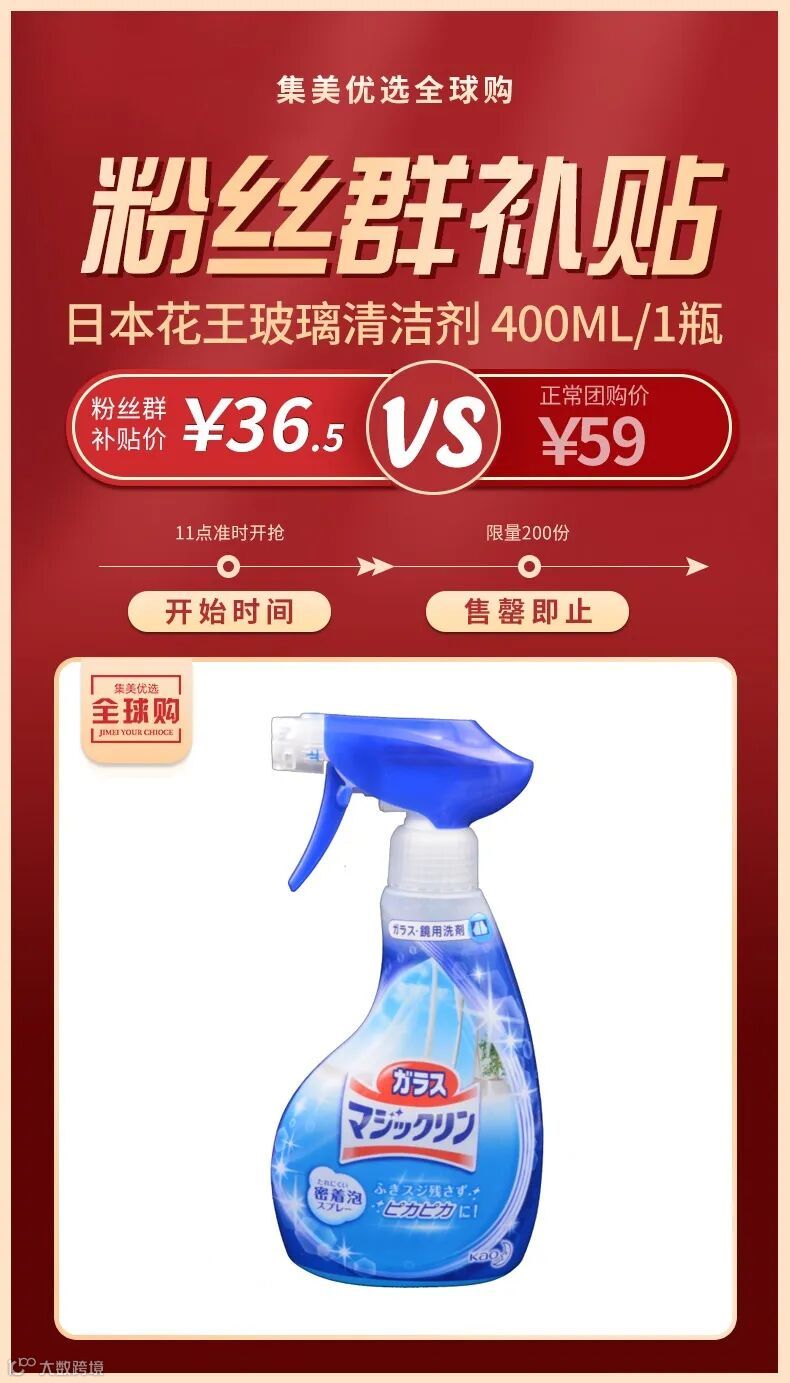 【粉丝群补贴】日本花王玻璃清洁剂镜面强力泡沫窗户喷雾去污透亮400ml/1瓶 原价:59元 粉丝群补贴价:36.5元