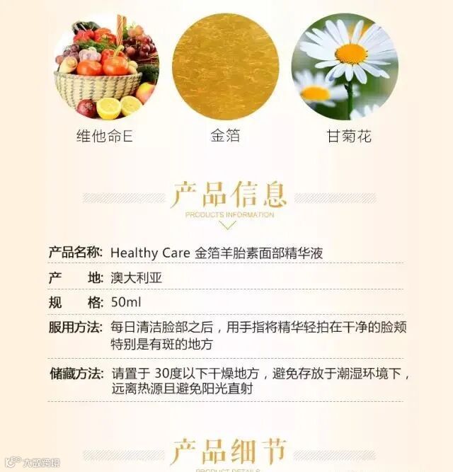 【大牌团购】澳洲 Healthy Care/ HC金箔羊胎素精华 50ml*1瓶 原价:129元 大牌团购价:89元 Healthy care 金箔羊胎素精华液