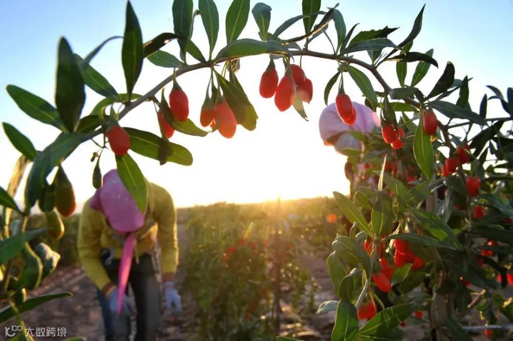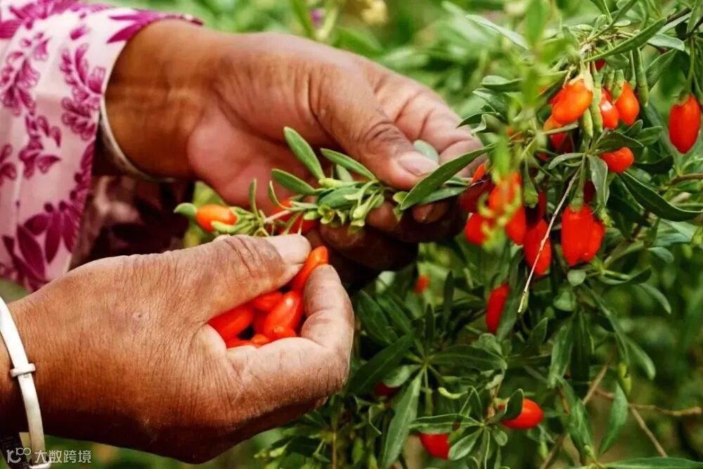 每天早上6点到9点进行采果,采摘长度大于2cm的大个枸杞,保证成熟的口感和出汁率。