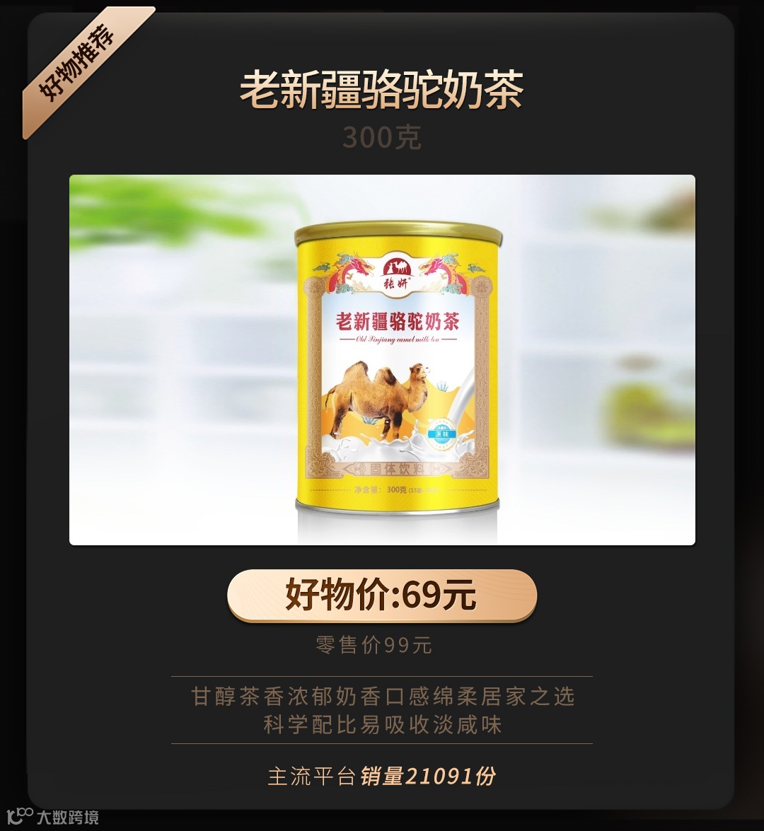 【大牌团购】老新疆骆驼奶茶 净重:300克(15条x20克) 原价:99元 大牌团购价:69元 地道的新疆奶茶和