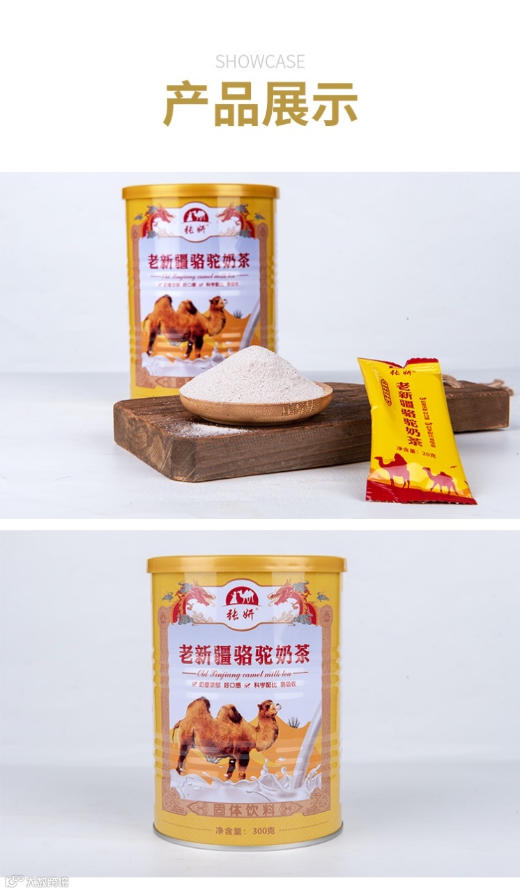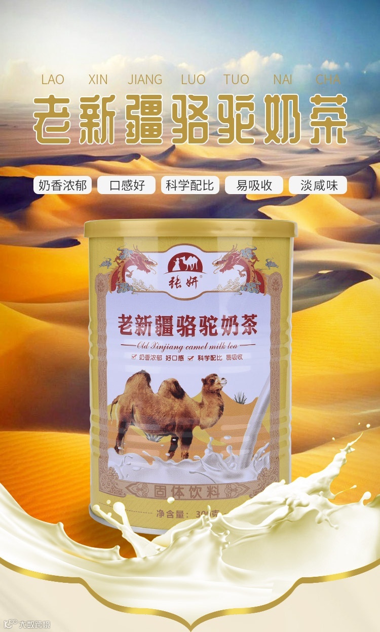 【配料】全脂驼奶粉、含乳食品基料粉(葡萄糖浆、植物油、奶油、乳清粉麦糊精、驼初乳(每100克含2.5蛋白质克)食品添加剂)