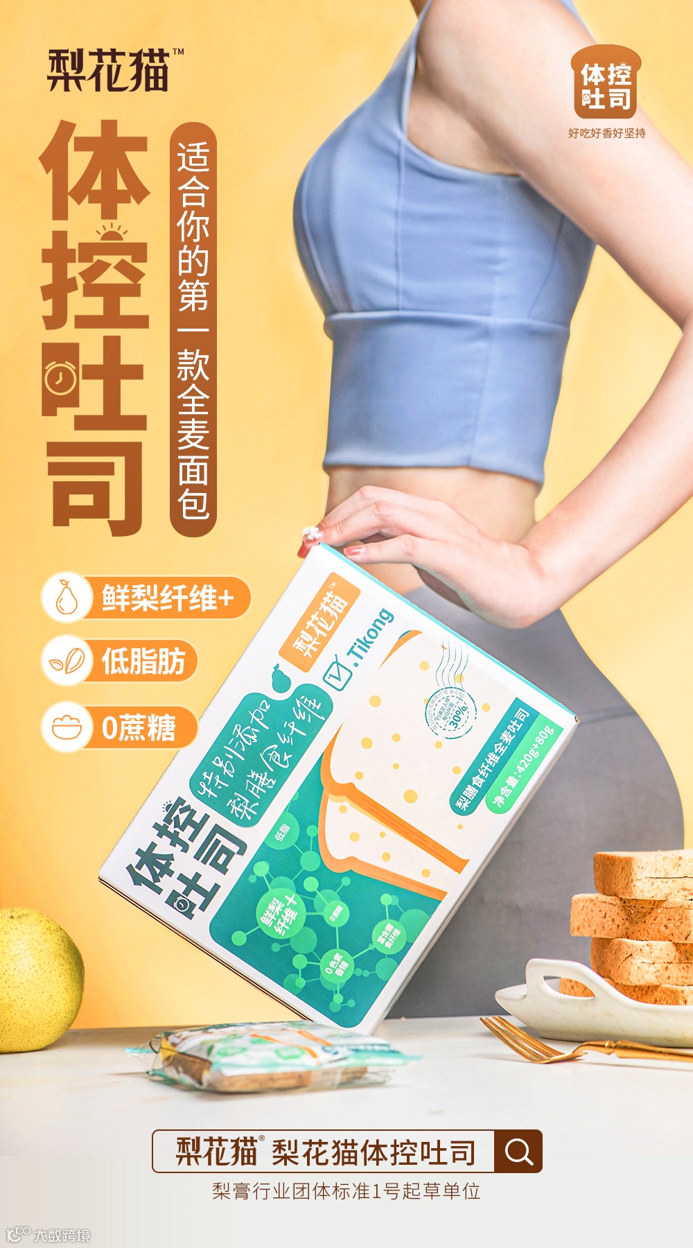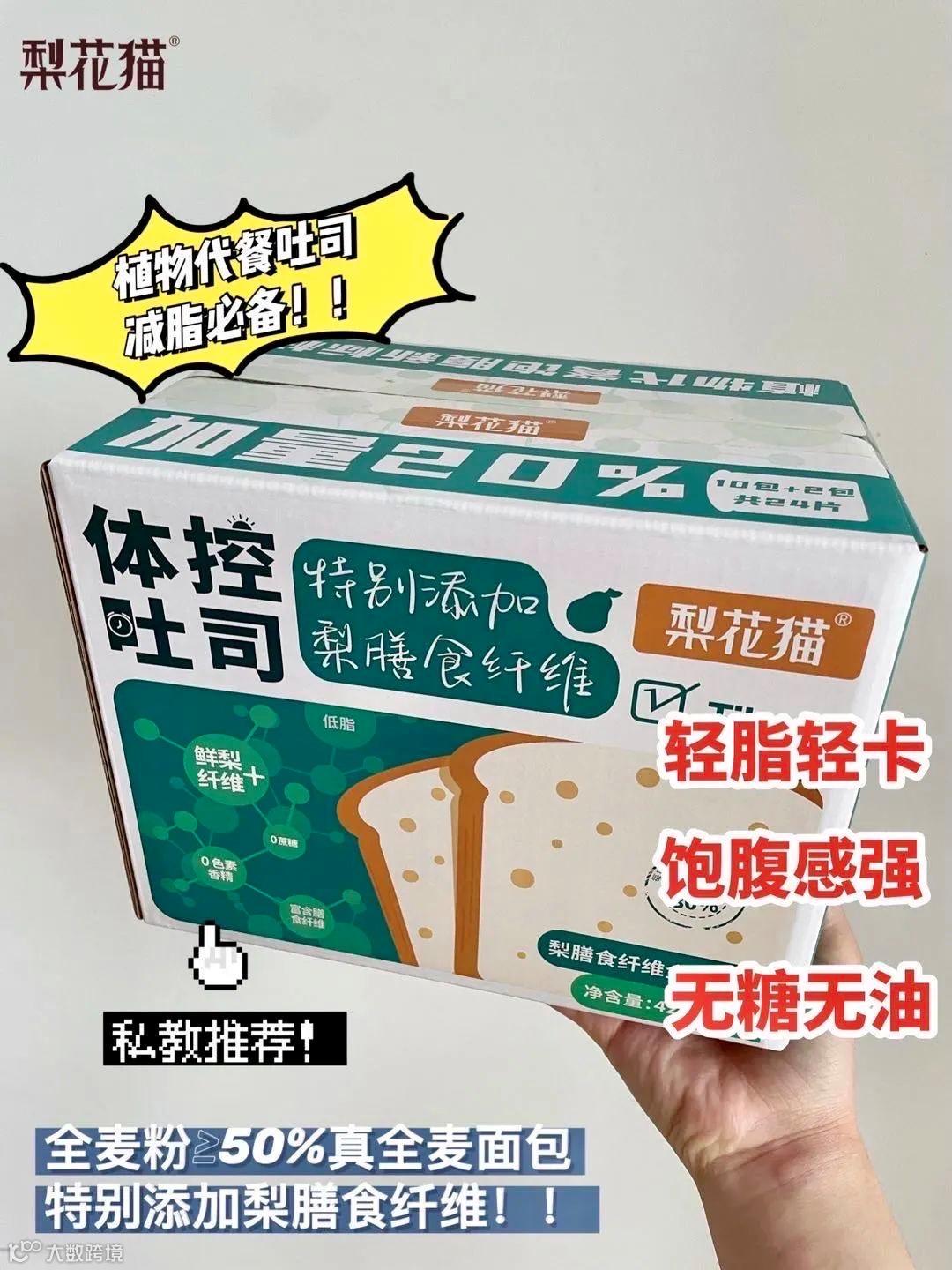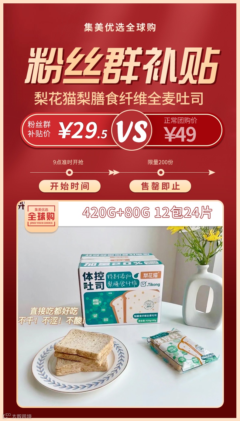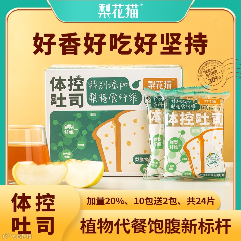 【粉丝群补贴】梨花猫梨膳食纤维全麦吐司12包 原价:49元 粉丝群补贴价:29.5元