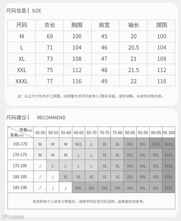 尺码参考表~