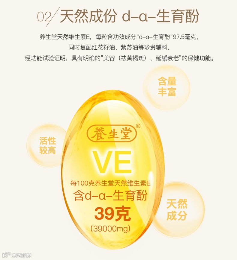 1.养生堂天然维生素E,每100g含VE39g