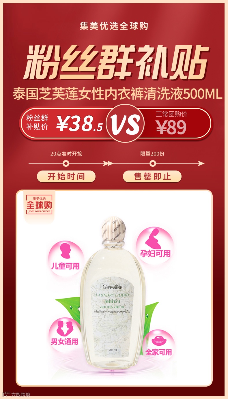 【粉丝群补贴】泰国芝芙莲Giffarine女性内衣内裤清洗液500ml 原价:89元 粉丝群补贴价:38.5元