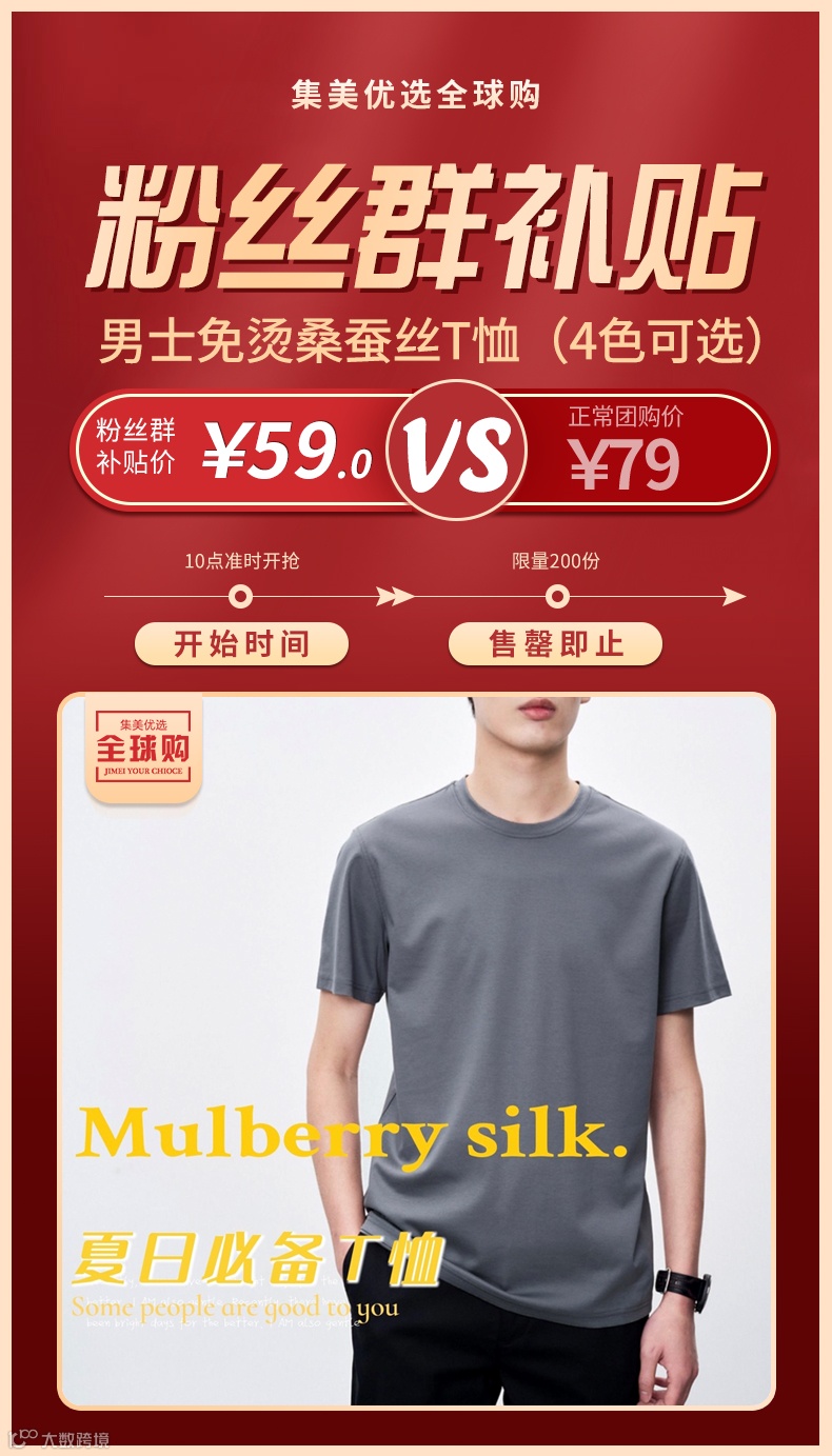 【粉丝群补贴】男士免烫桑蚕丝T恤 原价:79元 粉丝群补贴价:59元