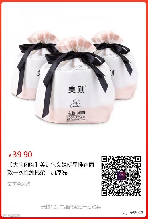 【大牌团购】美则包文婧明星推荐同款一次性纯棉柔巾 加厚洗脸洁面巾 3卷装 原价:59元 SVIP福利补贴价:39.9元 “洗完脸别用毛巾擦脸,毛巾很脏的。”