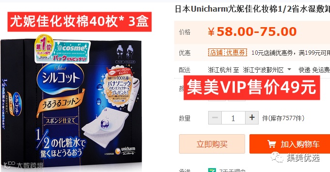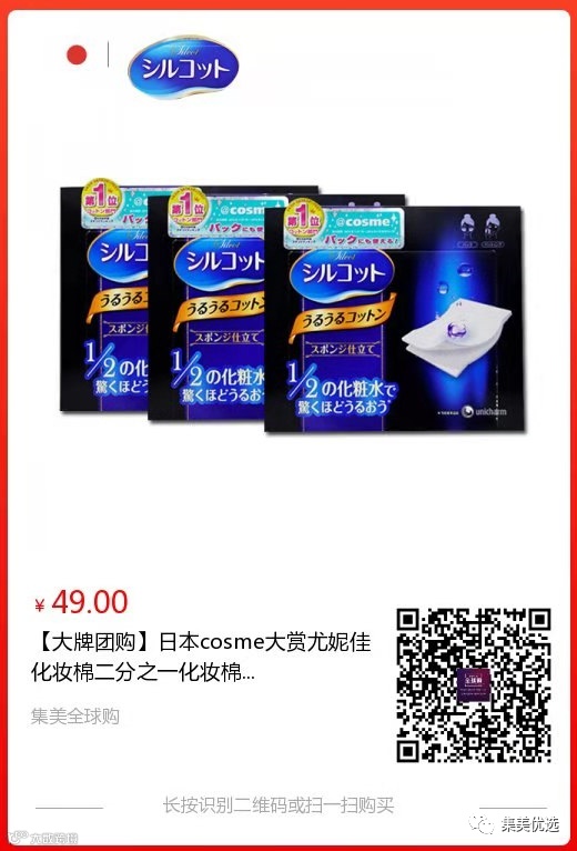 【大牌团购】日本cosme大赏尤妮佳化妆棉二分之一化妆棉40枚* 3盒 原价:69元 SVIP福利补贴价:49元