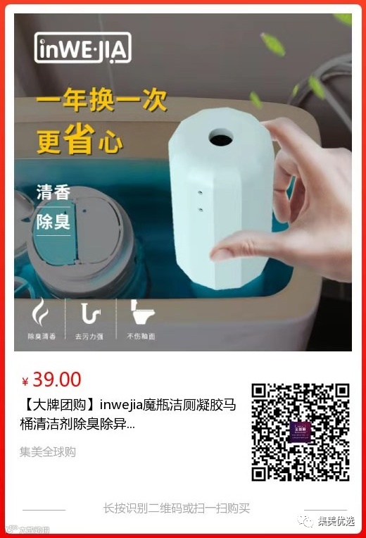 【大牌团购】inwejia魔瓶洁厕凝胶 2瓶 原价:49元 SVIP福利补贴价:39元 家里马桶不管刷得多干净