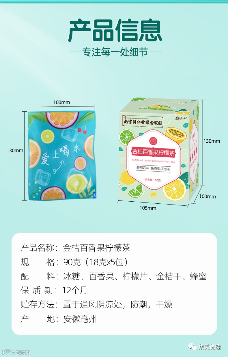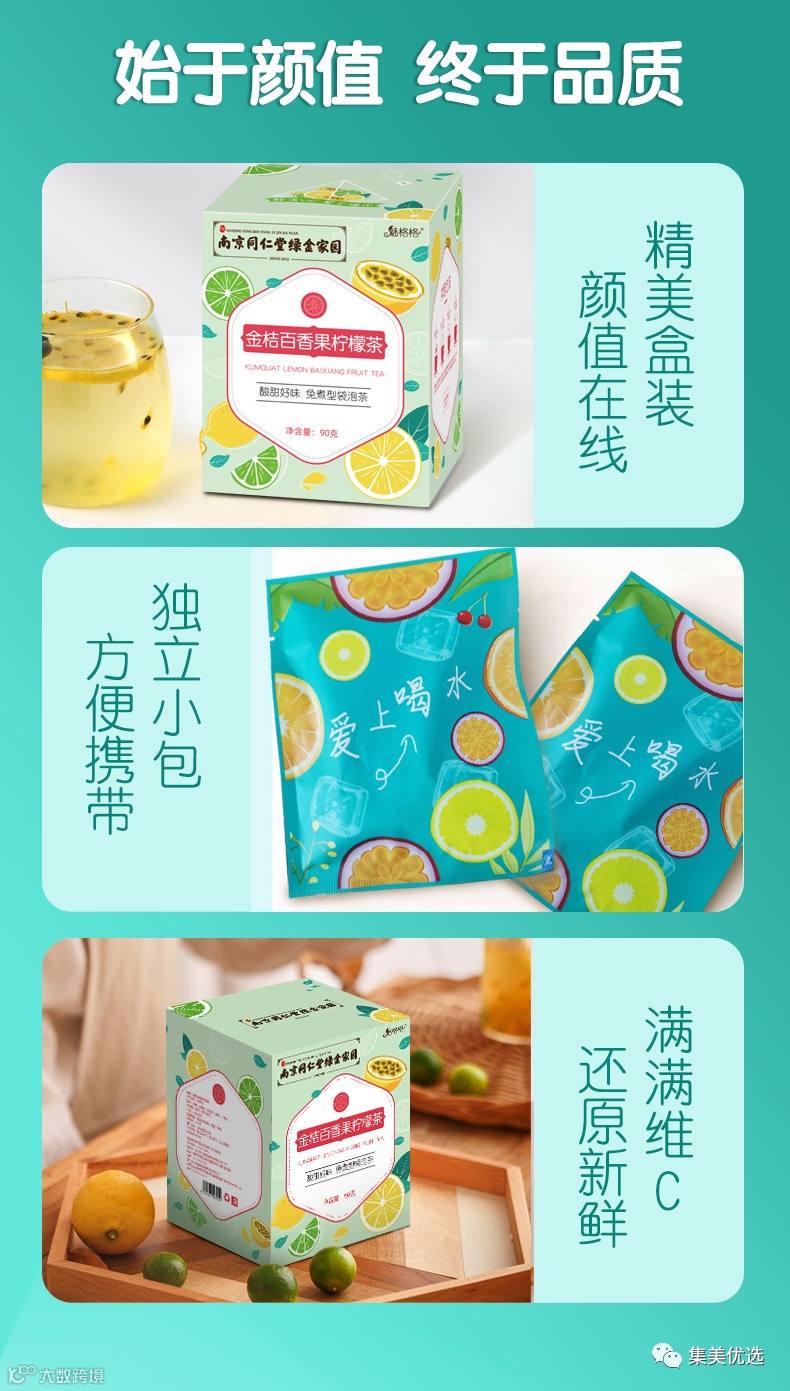【大牌团购】南京同仁堂金桔百香果柠檬茶 2盒 原价:49.9元 大牌团购价:29.9元 产品名:金桔百香果柠檬茶