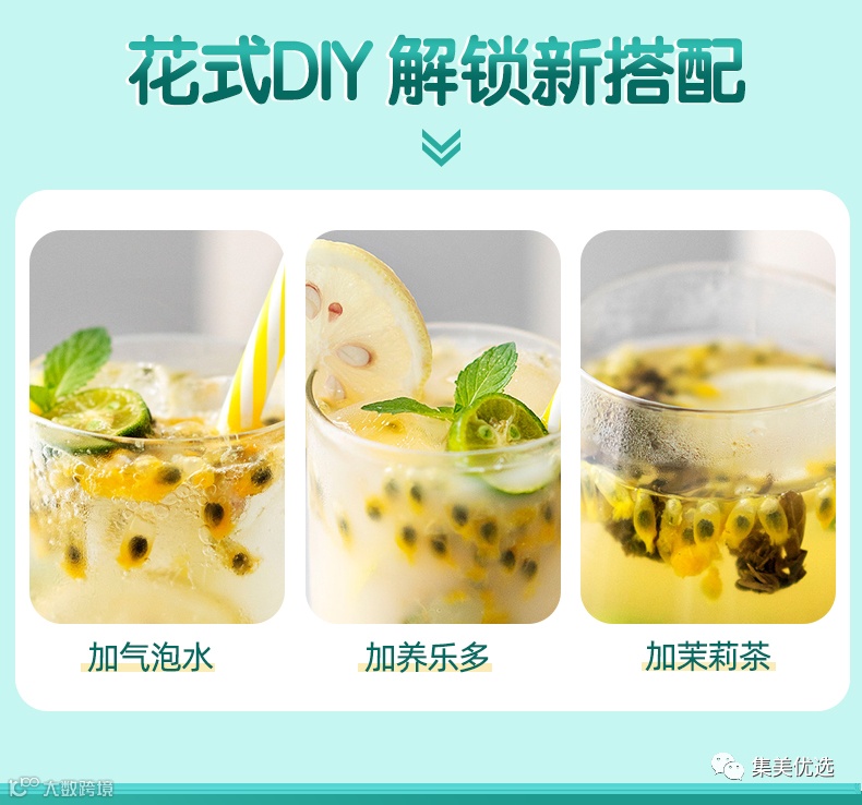 配料:冰糖、百香果、柠檬片、金桔干、蜂蜜