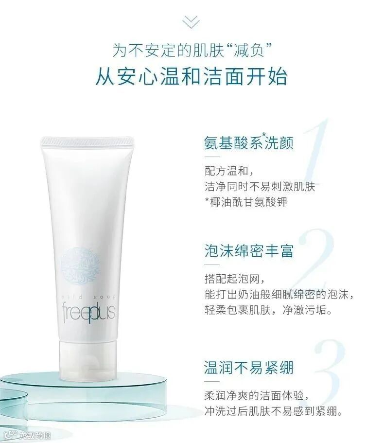 freeplus 芙丽芳丝的洗面奶,氨基酸洁面,配合保湿成分,充分保护易干燥肌肤的滋润,打造健康角质层。严格选取不给肌肤添加负担的优质而低刺激的原料。敏感肌肤,孕妇可用!