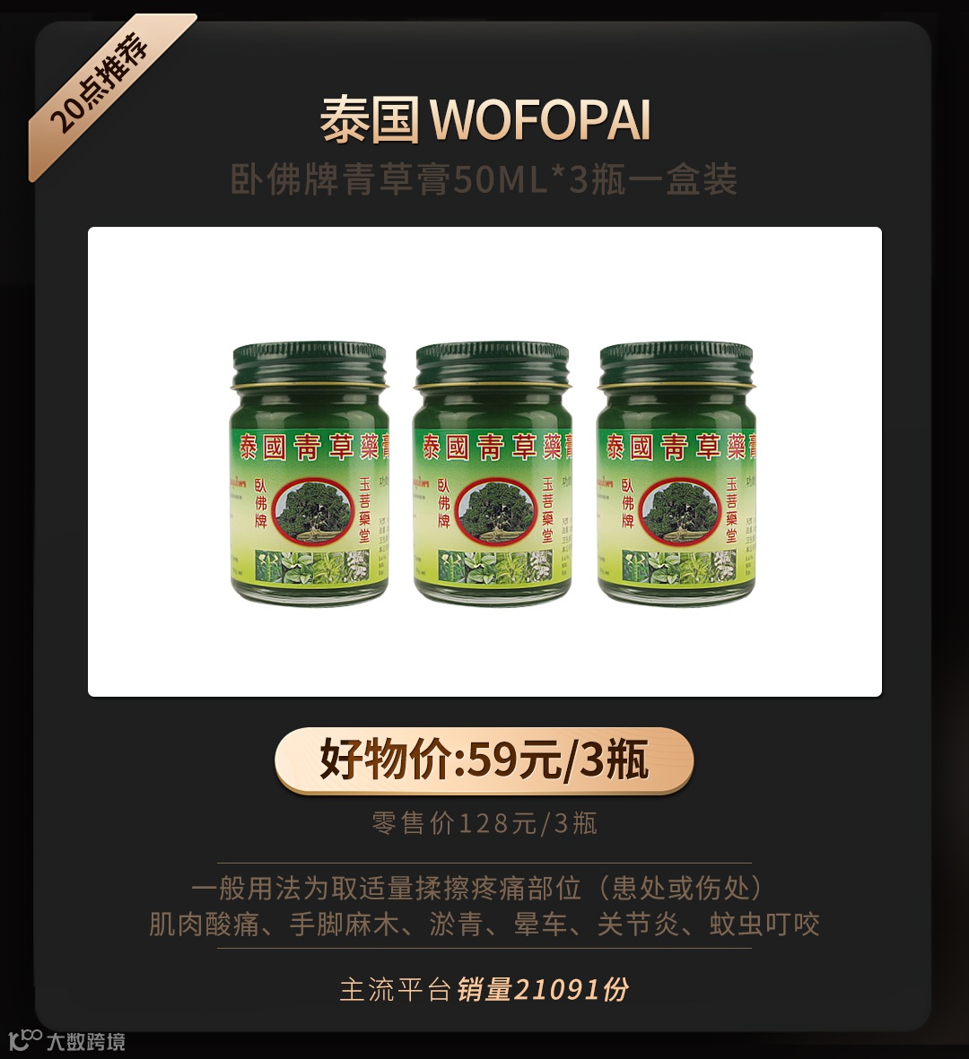【大牌团购】泰国 WOFOPAI 卧佛牌青草膏50ml*3瓶一盒装 原价:128元 大牌团购价:59元 集美强烈建议大家平时出门,包包里要带一瓶这个——泰国青草膏!
