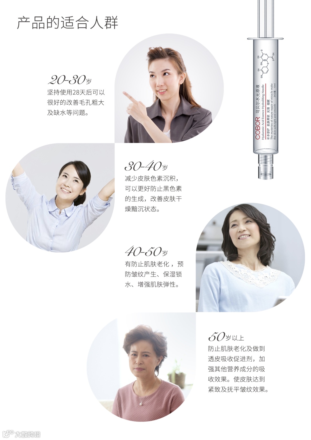 【主要功效】补水修复、提亮肤色、收缩毛孔、淡化细纹、提拉肌肤、紧致饱满、眼部脸部颈部全肌肤适用。