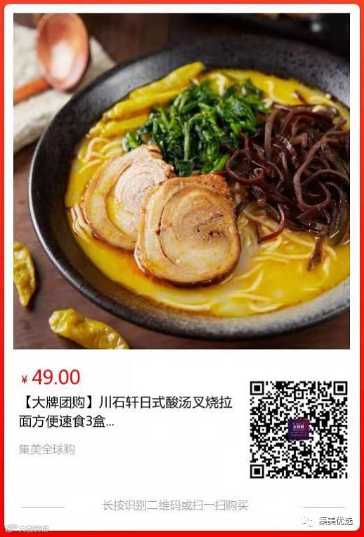 【大牌团购】川石轩日式酸汤叉烧拉面方便速食3盒 原价:79元 SVIP福利补贴价:49元